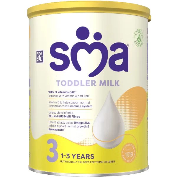 SMA 3 Toddler Milk 1–3 Year 800g is a premium Stage 3 growing-up formula expertly crafted to meet the nutritional needs of children aged 1 to 3 years. Designed through over a century of leading baby nutrition research, this Halal-certified toddler milk offers a scientifically balanced blend of essential vitamins and minerals that support overall healthy development. The formula contains Vitamin D and calcium to aid normal bone growth, while vitamins A, C, and D help maintain a strong immune system—providing toddlers with vital protection during their most active years. Enriched with iron to support healthy cognitive development and Omega 3 & 6 fatty acids plus iodine to promote normal growth, SMA 3 Toddler Milk ensures well-rounded nourishment. It also features a unique combination of milk, 2’FL, and GOS multi-fibres, supporting digestive comfort and healthy gut function. Parents can rely on its NO palm oil and NO fish oil formulation for a cleaner, high-quality nutritional choice. Packaged in an 800g container with a fresh new design but the same trusted formula, SMA 3 Toddler Milk is a highly recommended option for parents seeking a safe, nutritious.