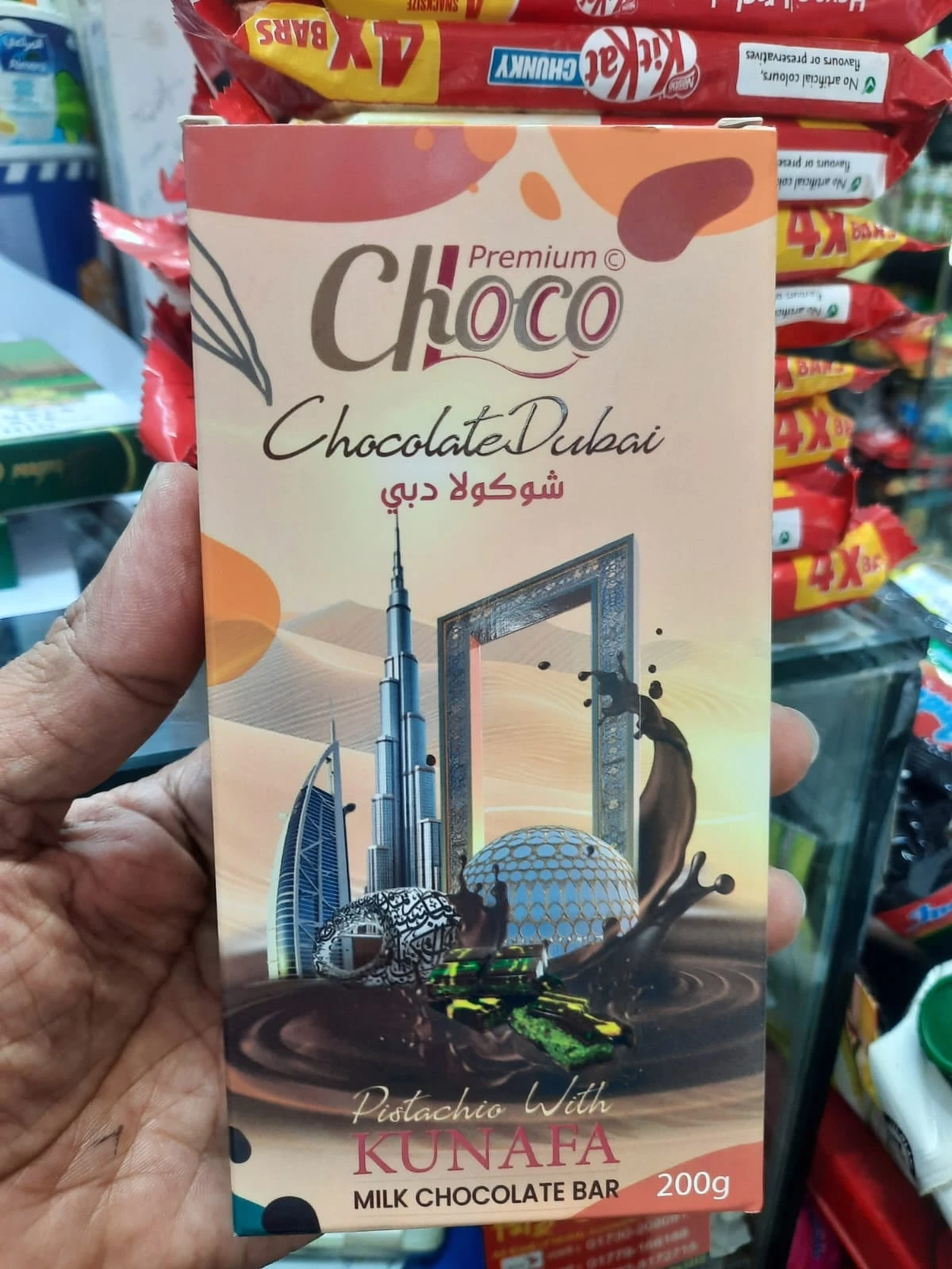 Premium Choc Chocolate Dubai Pistachio with Kunafa Milk Chocolate Bar 200gm